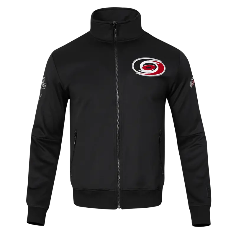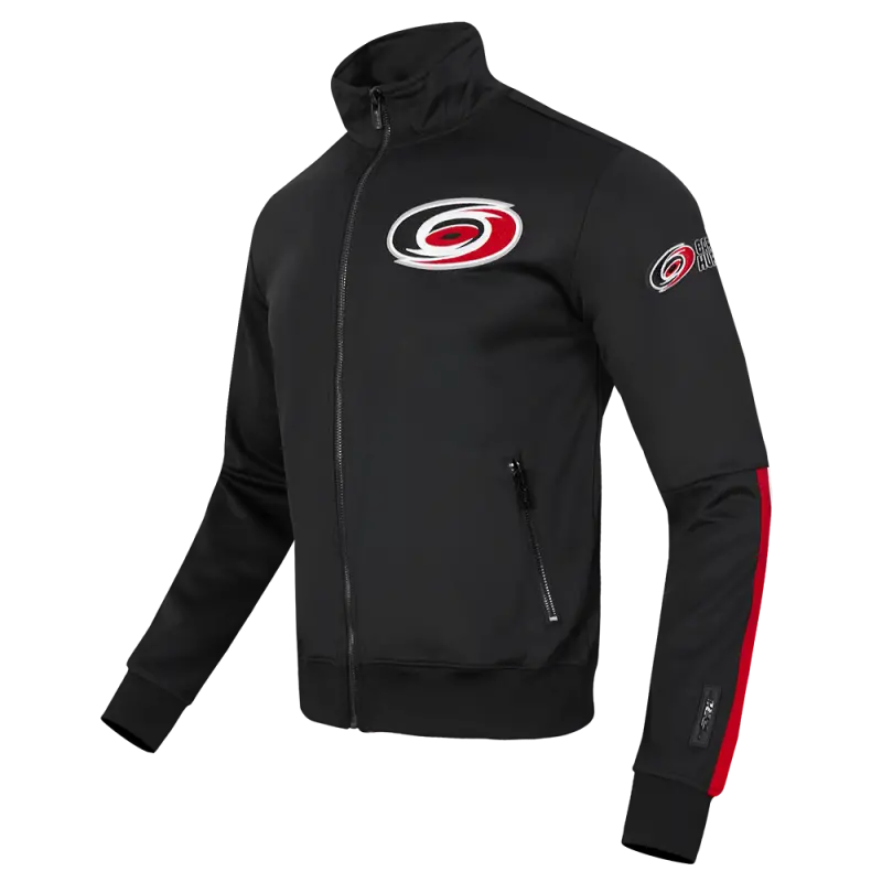 NHL CAROLINA HURRICANES CLASSIC CHENILLE MEN’S DK TRACK JACKET (BLACK\/RED)