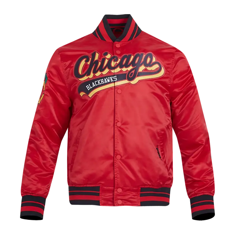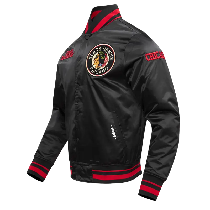 NHL CHICAGO BLACKHAWKS CLASSIC MEN’S SATIN JACKET (BLACK)