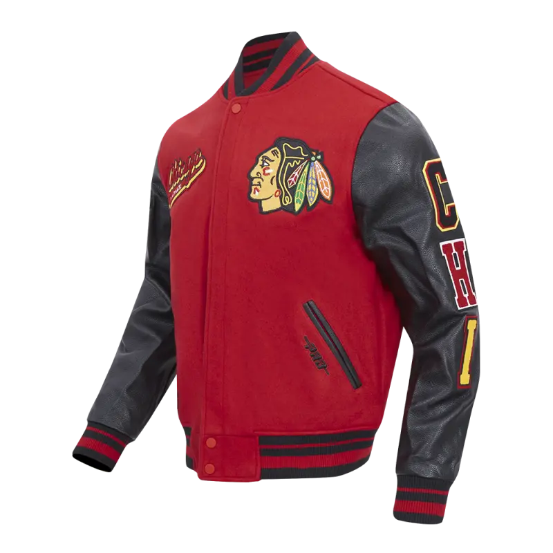 NHL CHICAGO BLACKHAWKS CLASSIC MEN’S WOOL VARSITY JACKET (BLACK\/RED)