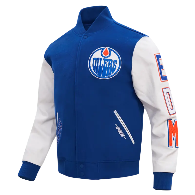NHL EDMONTON OILERS CLASSIC WOOL MEN’S VARSITY JACKET (DODGER BLUE\/WHITE)