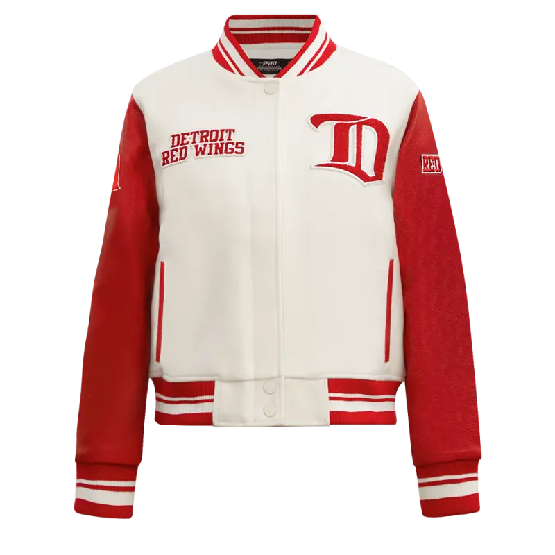 NHL DETROIT RED WINGS RETRO CLASSIC WOMEN’S RIB WOOL VARSITY JACKET (EGGSHELL\/ RED)