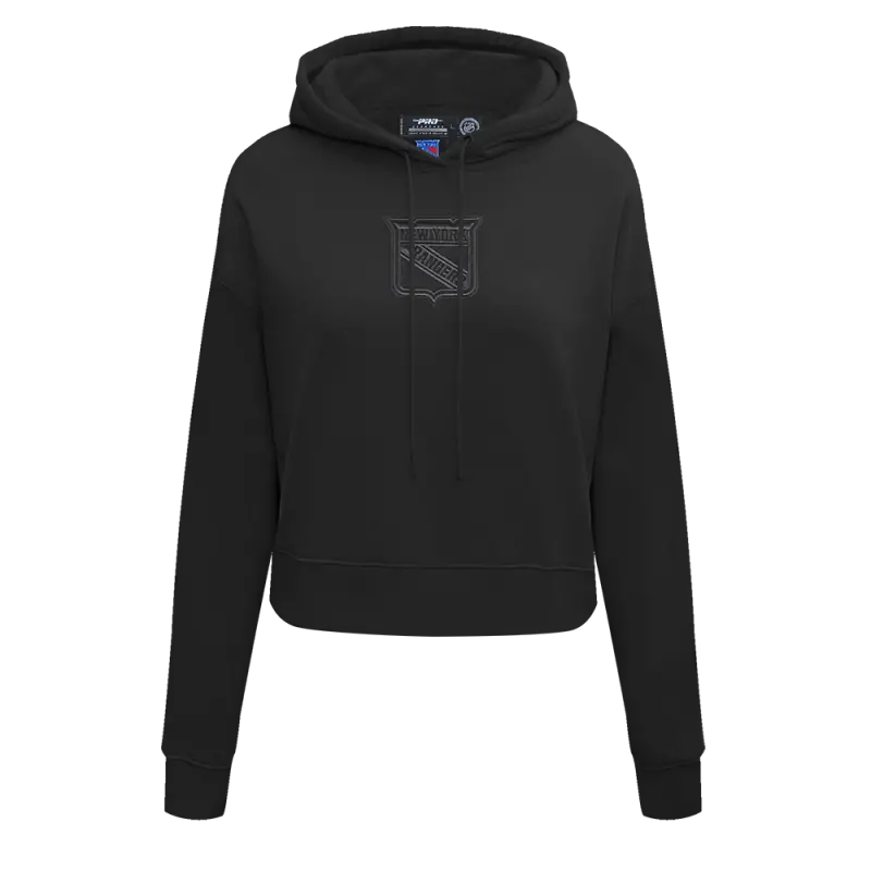 NHL NEW YORK RANGERS NEUTRAL WOMEN’S CROPPED PULLOVER HOODIE (BLACK)