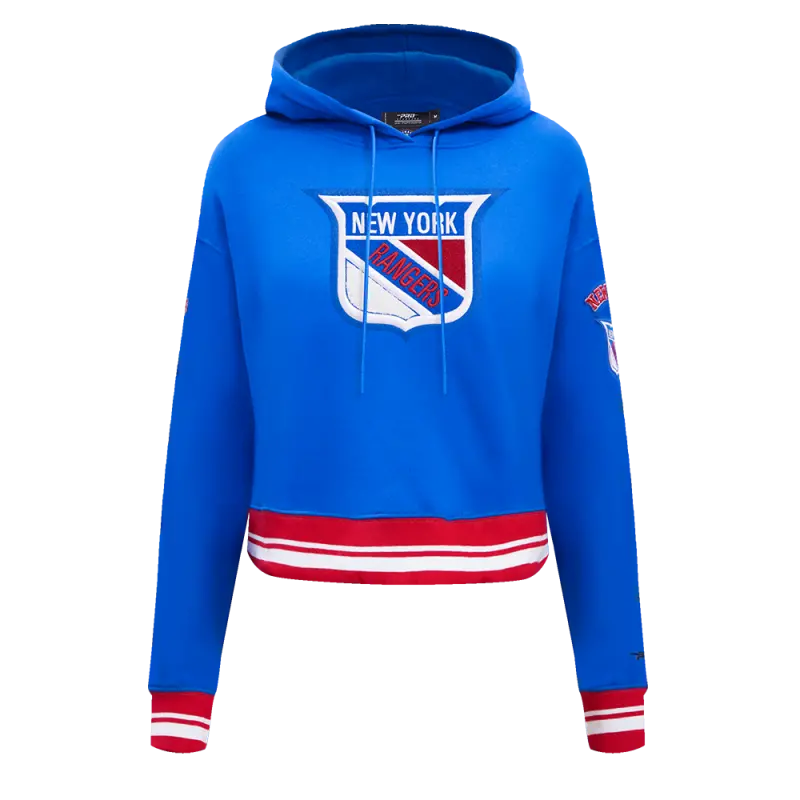 NHL NEW YORK RANGERS RETRO CLASSIC WOMEN’S RIB CROPPED PULLOVER HOODIE (ROYAL BLUE\/RED)