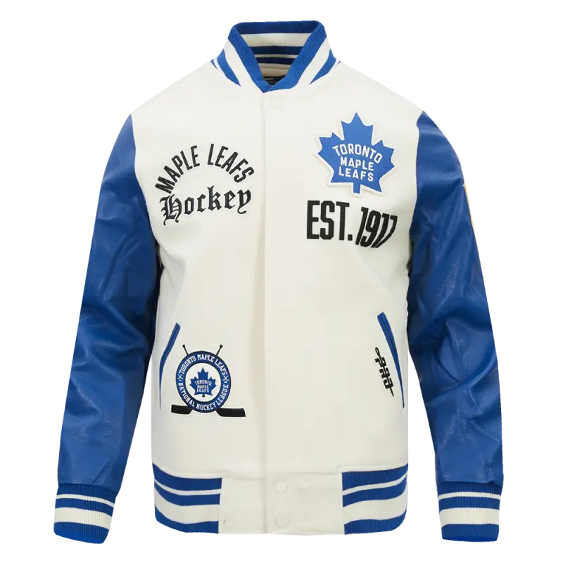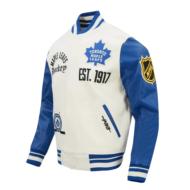 NHL TORONTO MAPLE LEAFS RETRO CLASSIC MEN’S RIB WOOL VARSITY JACKET (DODGER BLUE\/WHITE)