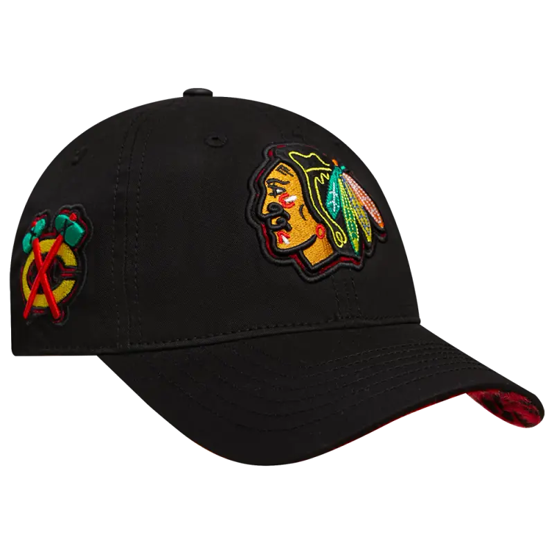 NHL CHICAGO BLACKHAWKS ANIMAL PRINT DAD HAT (BLACK)