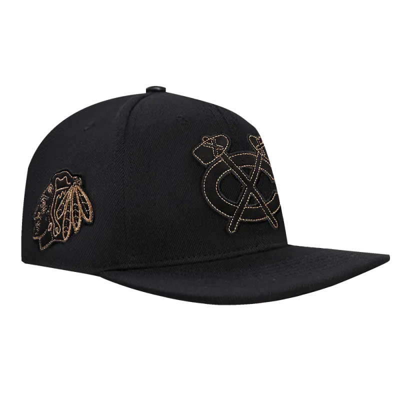 NHL CHICAGO BLACKHAWKS BLACK \u0026 GOLD WOOL SNAPBACK HAT (BLACK)