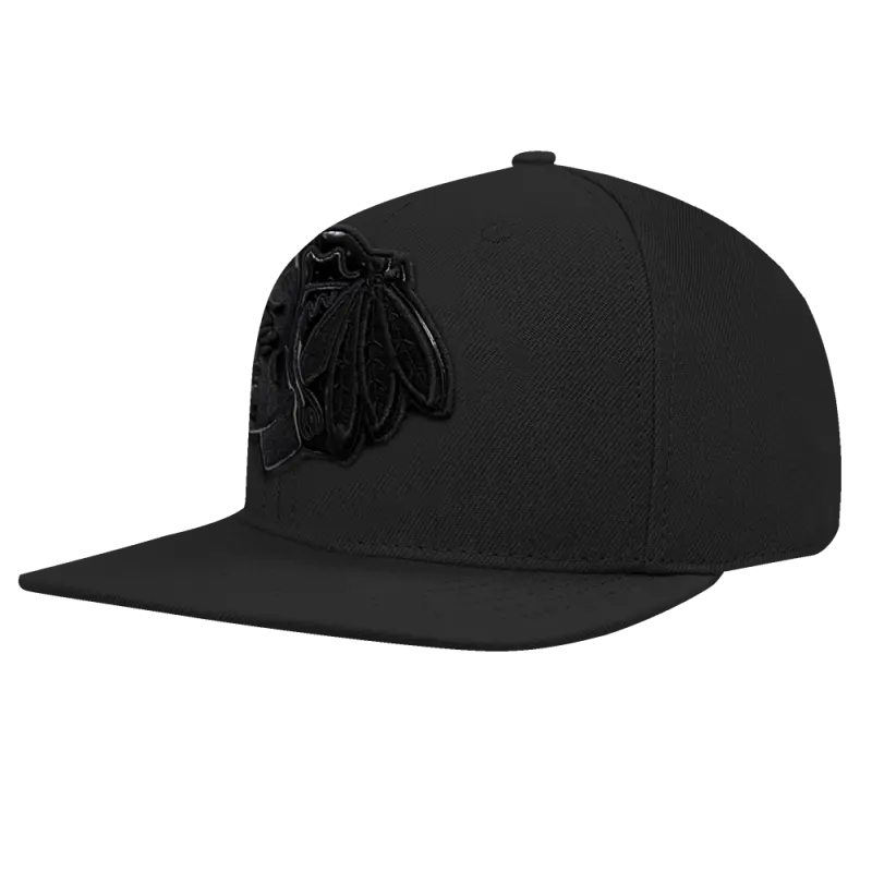 NHL CHICAGO BLACKHAWKS CLASSIC 3BK WOOL UNISEX SNAPBACK HAT (TRIPLE BLACK)