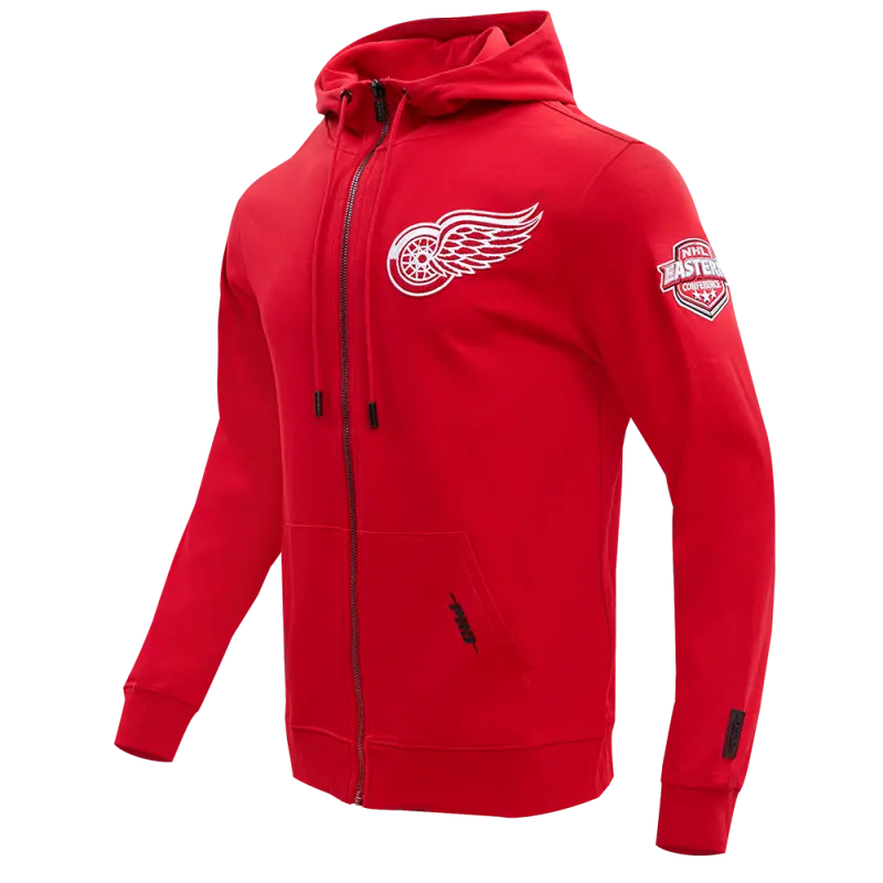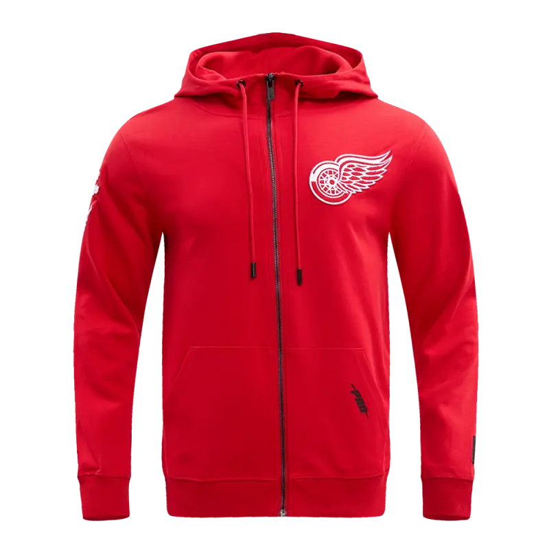 NHL DETROIT RED WINGS CLASSIC CHENILLE MEN’S FULL ZIP PULLOVER HOODIE (RED)