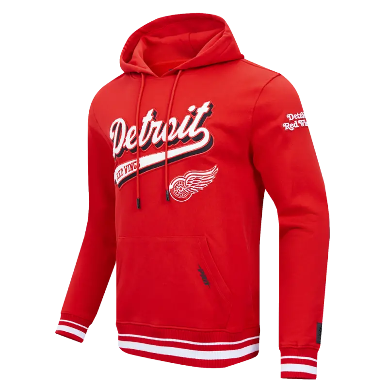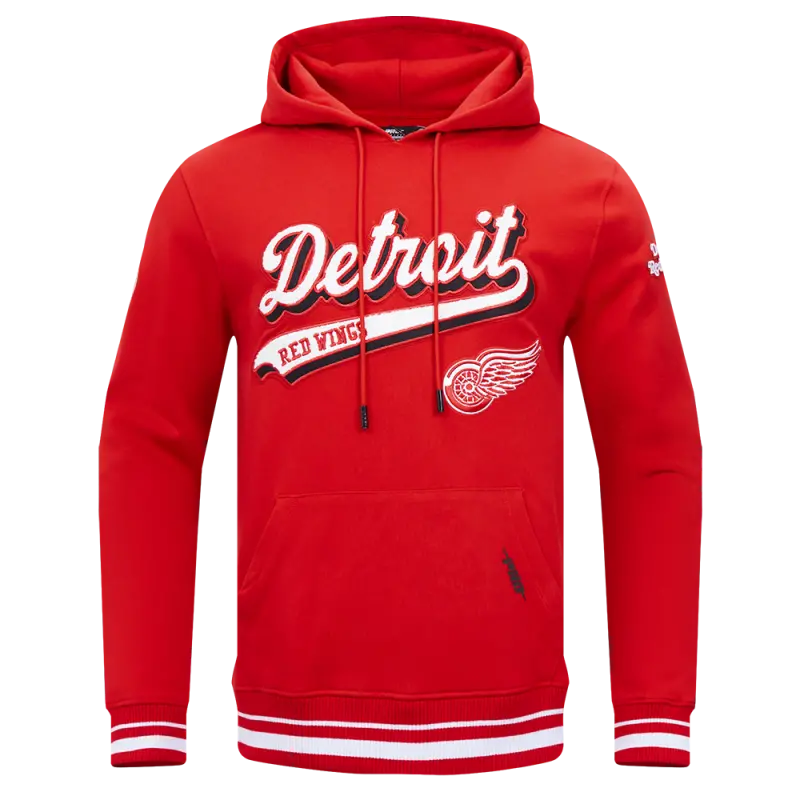NHL DETROIT RED WINGS SCRIPT TAIL MEN’S RIB FLEECE PULLOVER HOODIE (RED)