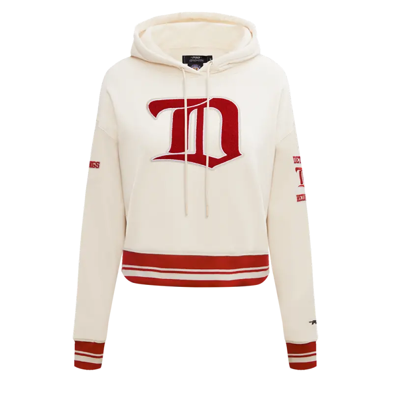 NHL DETROIT RED WINGS RETRO CLASSIC WOMEN’S RIB CROPPED PULLOVER HOODIE (EGGSHELL\/ RED)