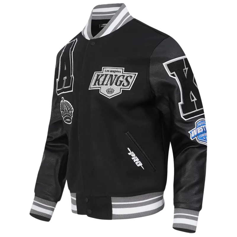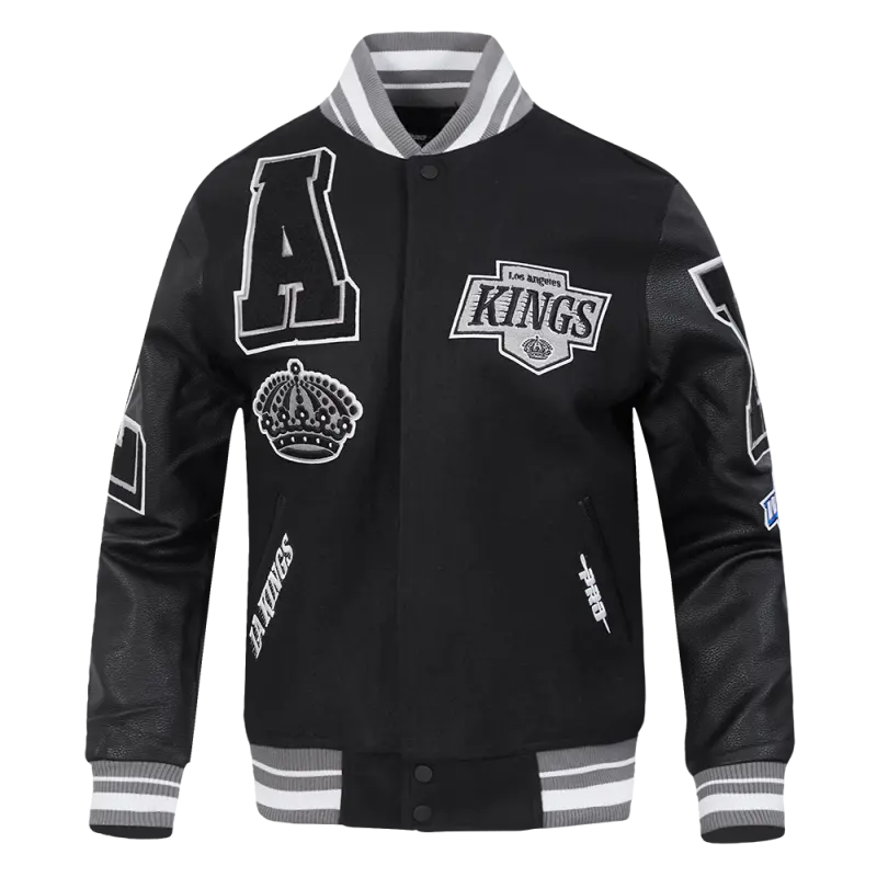 NHL LOS ANGELES KINGS MASHUP MEN’S RIB WOOL VARSITY JACKET (BLACK\/GRAY)