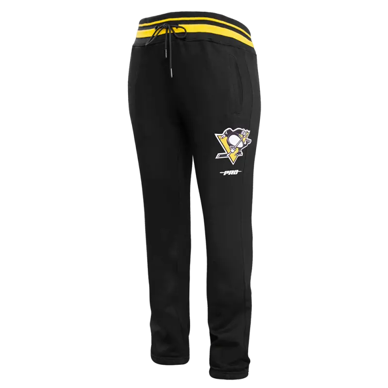NHL PITTSBURGH PENGUINS SCRIPT TAIL MEN’S RIB FLEECE SWEATPANT (BLACK\/YELLOW)