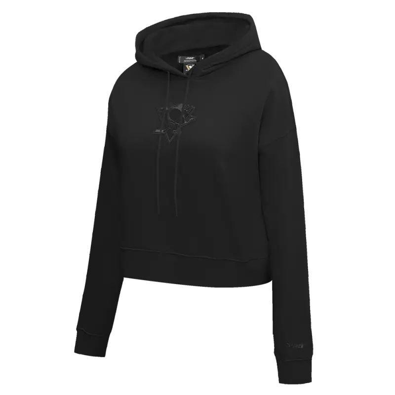 NHL PITTSBURGH PENGUINS NEUTRAL WOMEN’S CROPPED PULLOVER HOODIE (BLACK)
