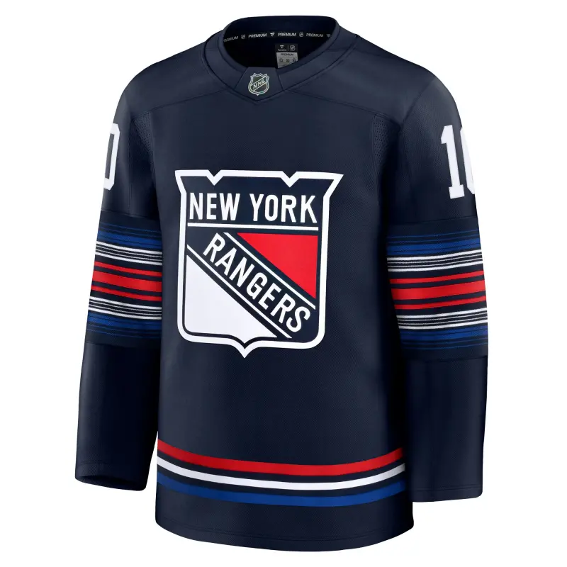 When you're watching the on-ice action, you need a jersey to match. With this New York Rangers Fanatics Alternate Premium Jersey you get just that! This premium jersey is made for the loyal New York Rangers fan like you and takes inspiration from what your team wears on gameday. Available in traditional colors, this Artemi Panarin jersey possesses a more adjusted fit and mesh panels to enhance your comfort no matter where you enjoy the game!