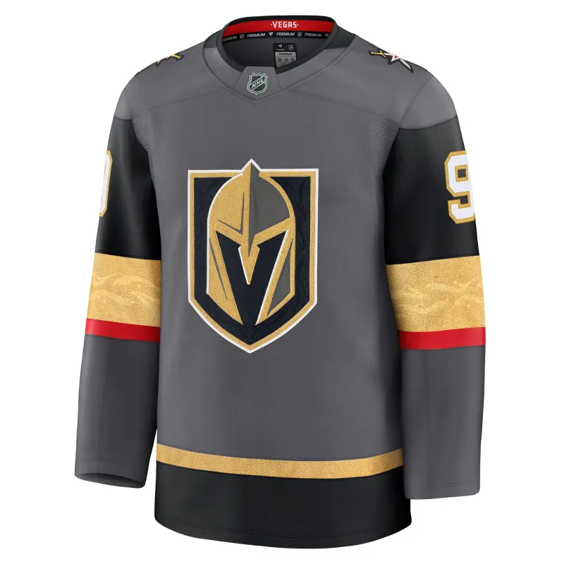 When you're watching the on-ice action, you need a jersey to match. With this Vegas Golden Knights Fanatics Alternate Premium Jersey you get just that! This premium jersey is made for the loyal Vegas Golden Knights fan like you and takes inspiration from what your team wears on gameday. Available in traditional colors, this Jack Eichel jersey possesses a more adjusted fit and mesh panels to enhance your comfort no matter where you enjoy the game!