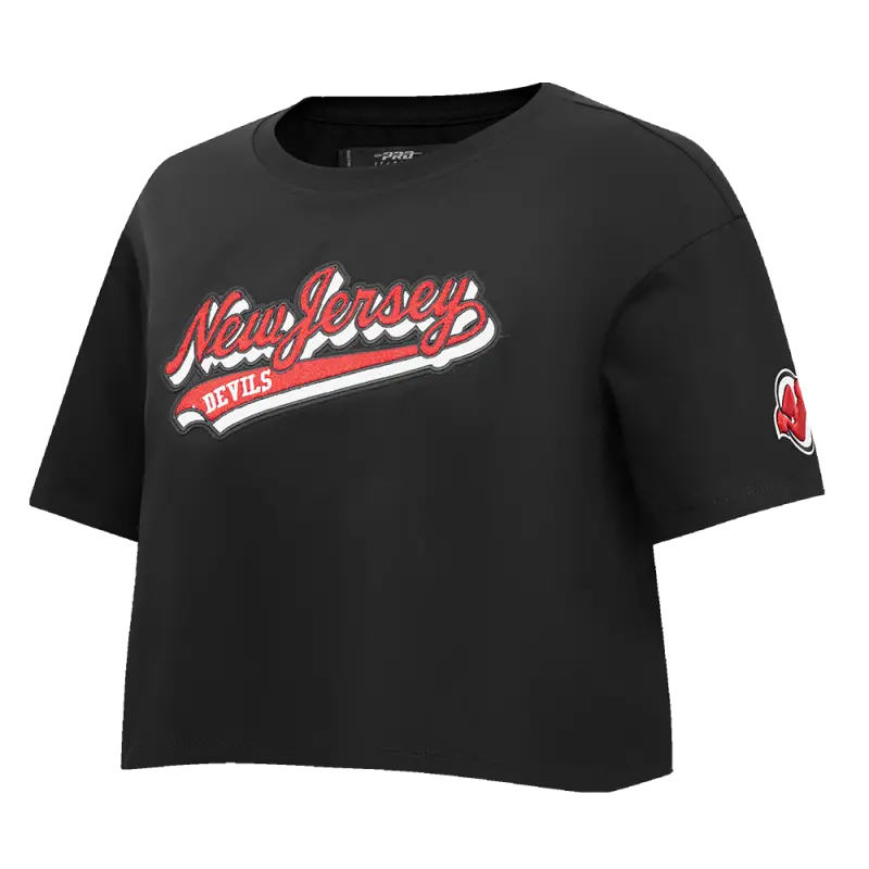 NHL NEW JERSEY DEVILS SCRIPT TAIL WOMEN’S SJ BOXY TEE (BLACK)