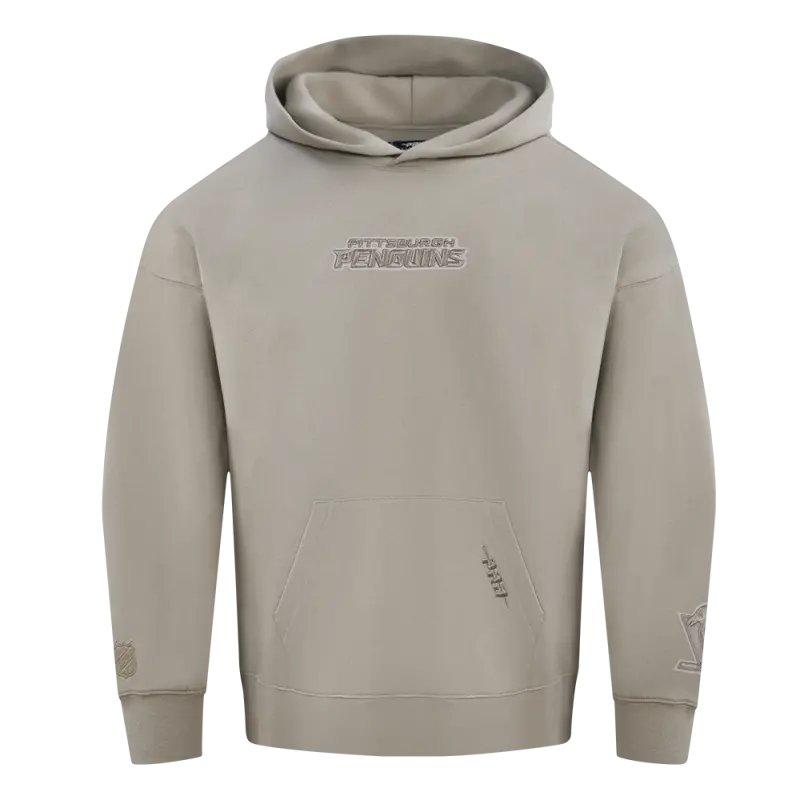 NHL PITTSBURGH PENGUINS WINGSPAN MEN’S DROP SHOULDER FLEECE PULLOVER HOODIE (TAUPE)
