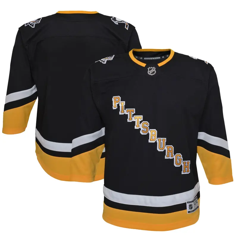 Please Note: This product ships directly from the USA. Help your young fan show everyone how proud they are to be a Pittsburgh Penguins fan when you grab them this 2021/22 Alternate Premier Jersey. Featuring crisp Pittsburgh Penguins graphics, this will be the go-to jersey for your kiddo on game day! Add this sweet gear to their Pittsburgh Penguins collection today.